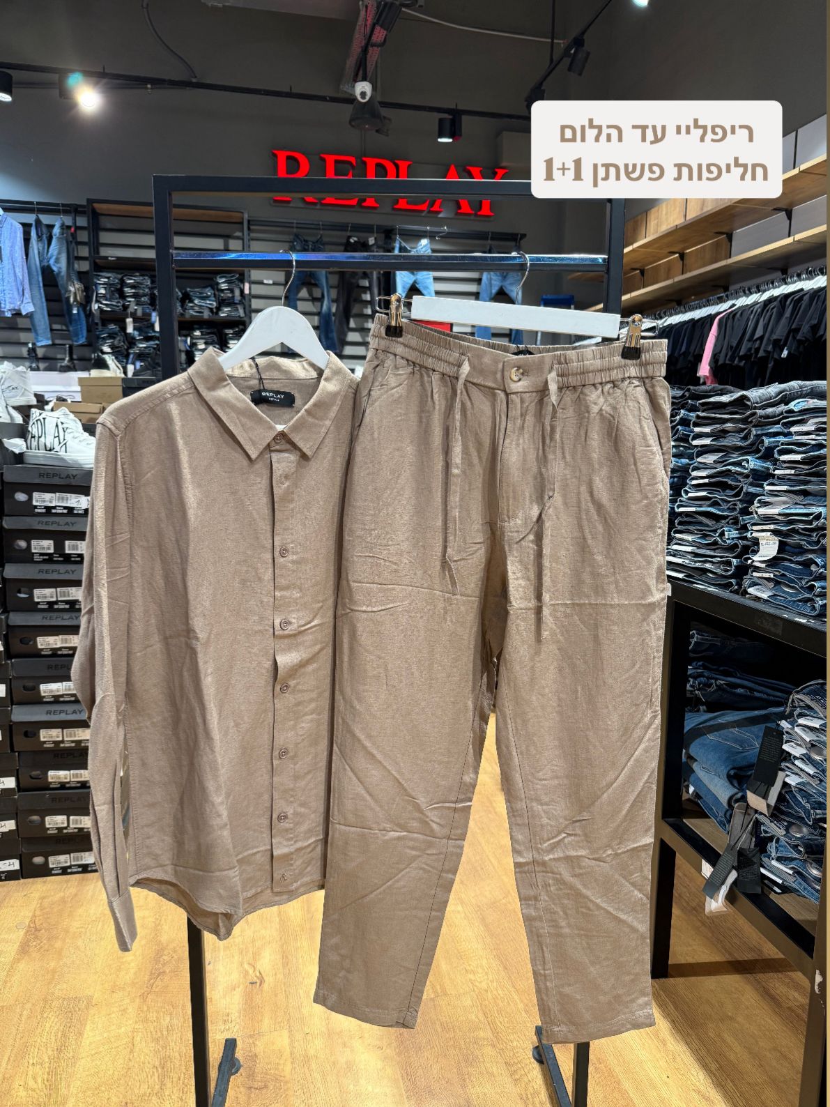במסגרת מבצע סוף השנה, מציעה חנות האאוטלט של REPLAY בקניון עד הלום מבצע 1+1 על כל הביגוד בחנות, לנשים ולגברים.