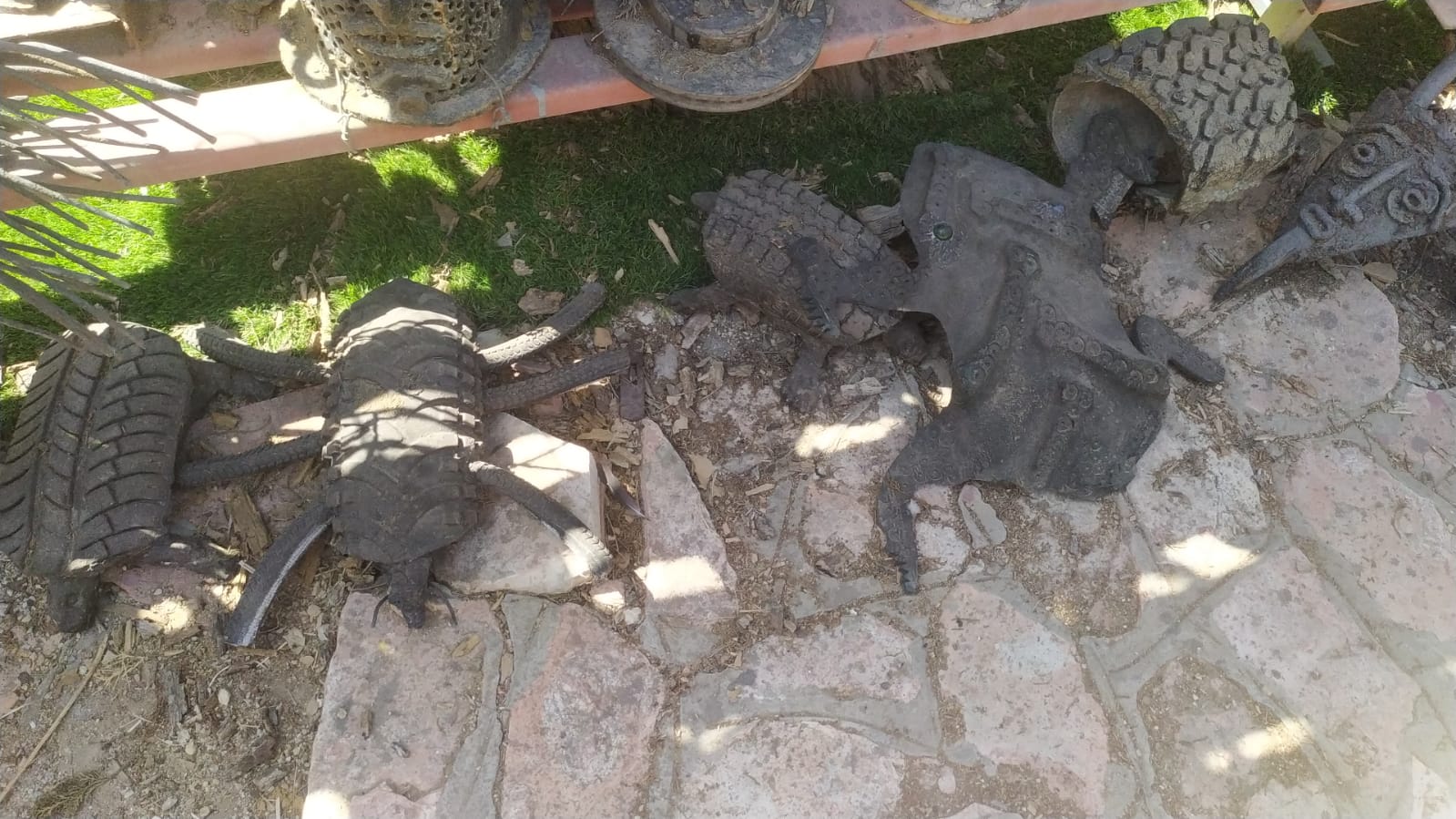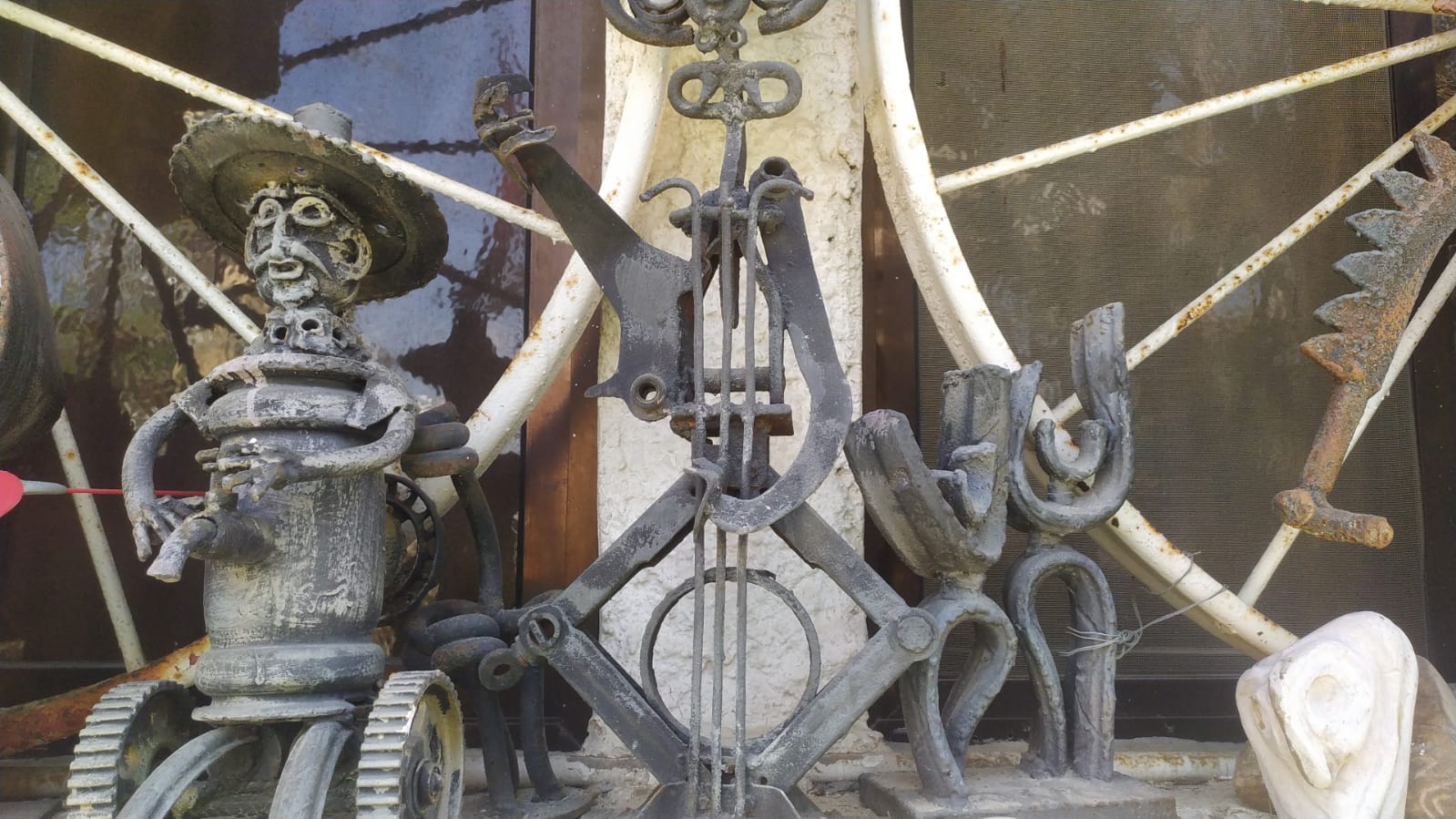 כשנכנסתי לחצר ביתו של יומה, הסתובבי בין מאות רבות של פסלים, המונחים ותלויים בכל מקום בחצר ביתו רחב הידיים ושופע הצמחייה המטופחת, שצומחת כאן למעלה משישים שנים. פינה אחת מיוחדת תפסה את עיניי ויומה מיהר לעדכן שלפינה הזו יש סיפור מיוחד, "פינת הפלונטר".