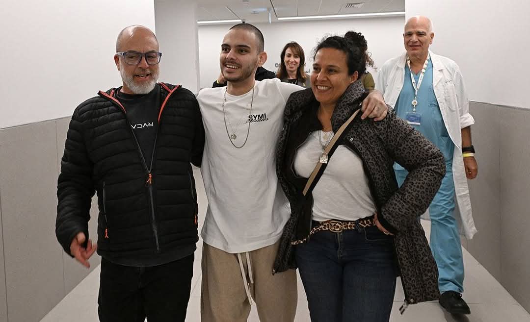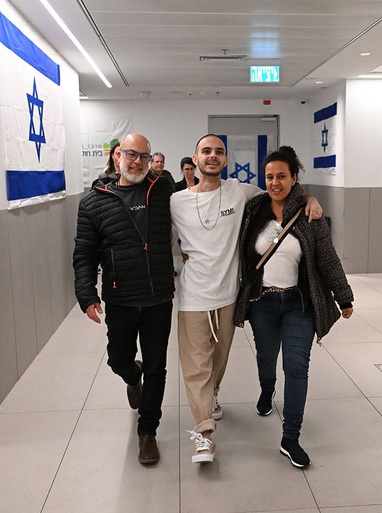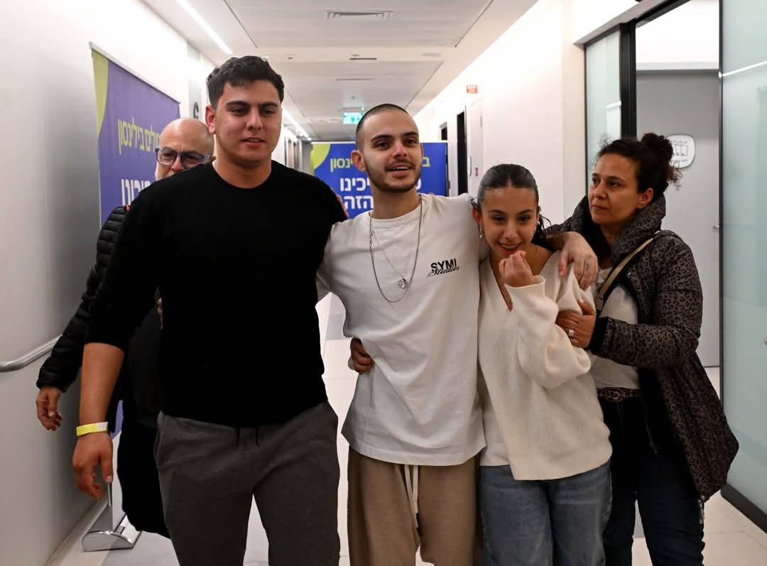 עומר ונקרט במפגש מרגש עם בני משפחתו בבית החולים בילינסון. סטילס: חיים צח ואבי אוחיון, לע"מ