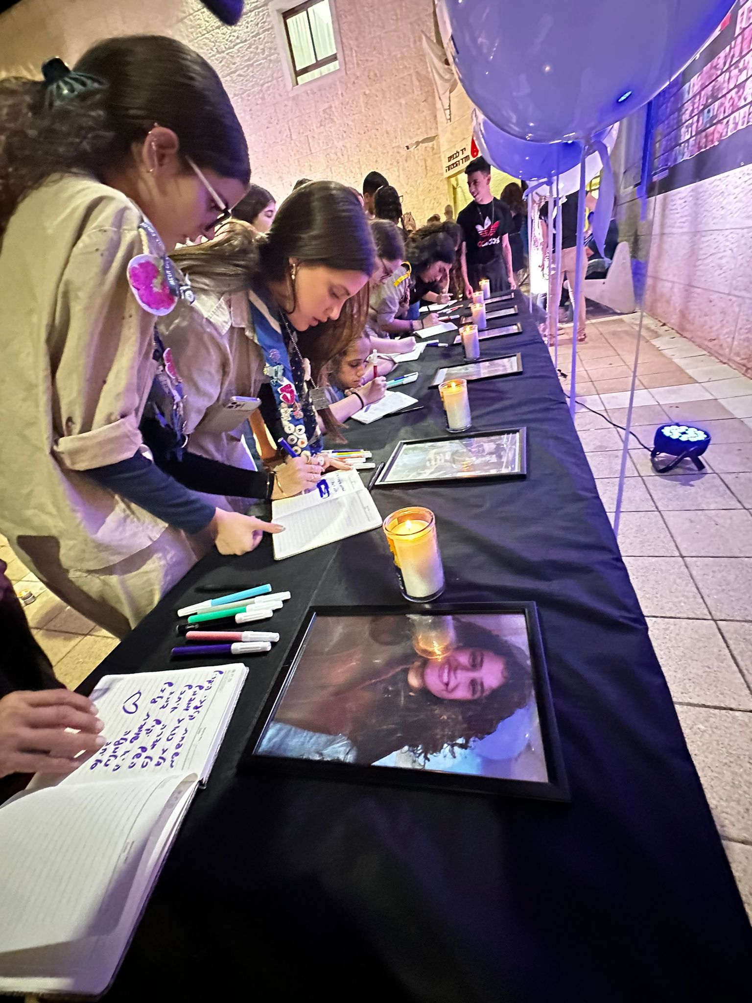 בטקס שובר לב, כשהנרות שוברים את החשיכה הבוגרות והבוגרים כתבו את שעל ליבם למשפחות השכולות במחברות זכרון והפריחו בלונים בתפילה ובתקווה שהחטופים ישובו הביתה.