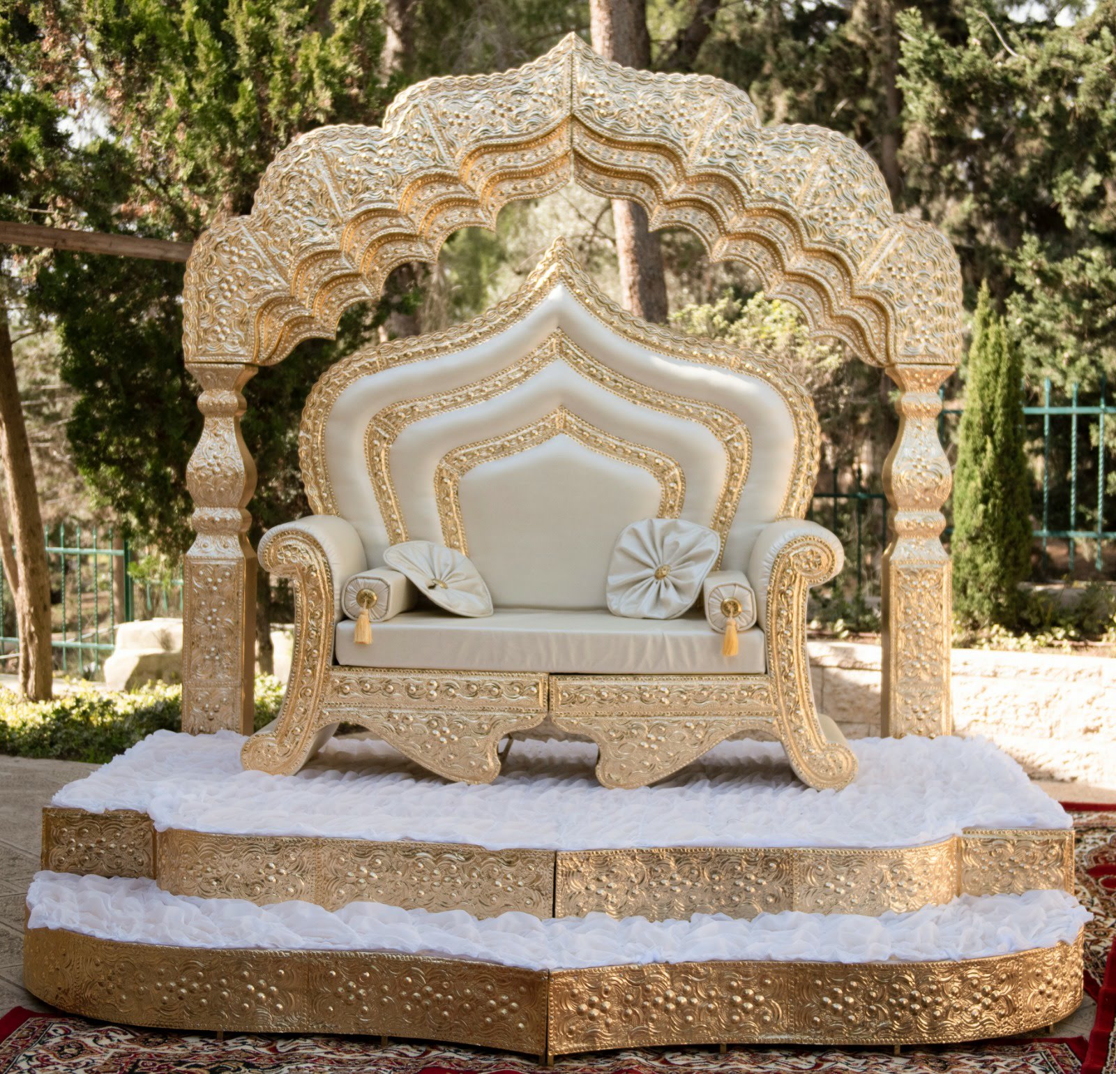 חופה על בריכת מים עם גשר יפייפה